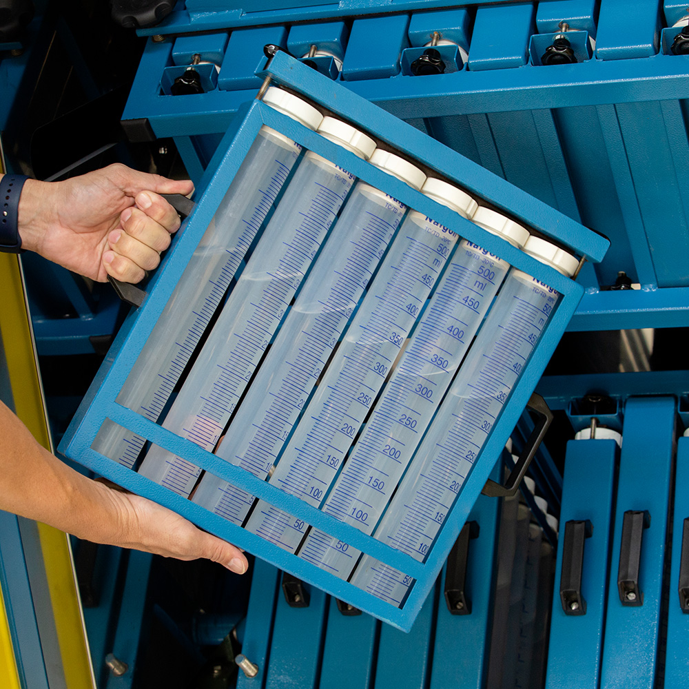 Equipment used for physical analysis of the soil, for measuring granulometry through its density.