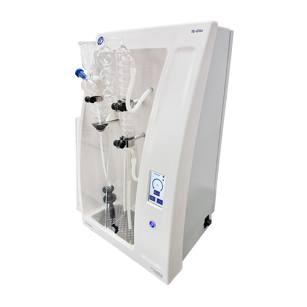 • Kjeldahl connection: Includes a borosilicate glass dosing cup and Stop-flow valve