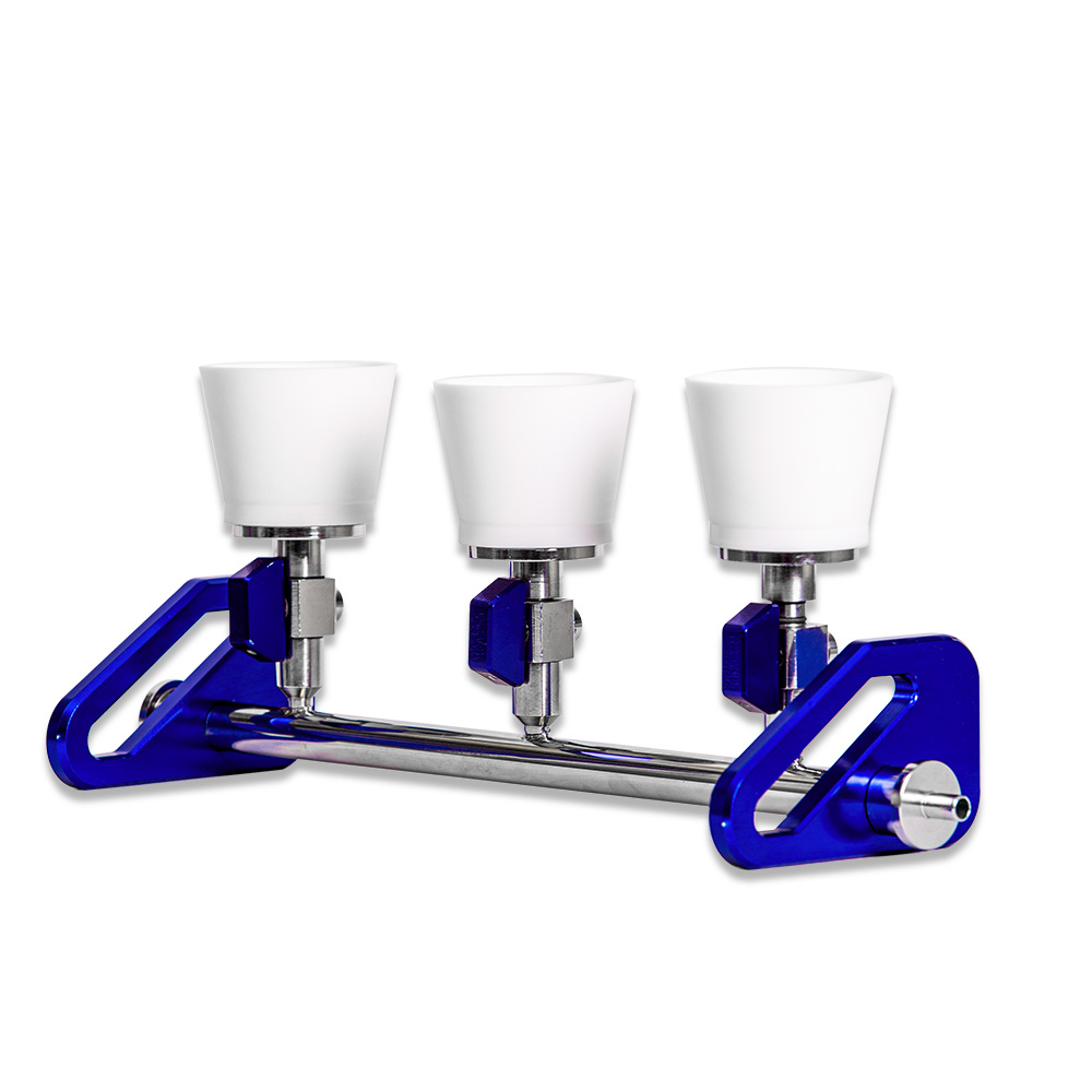 - Capacidad hasta para 3 muestras, con control individual por válvulas, que substituye el sistema de filtración tradicional con uso de kitasato, embudo de buchner, y bomba de vacío
