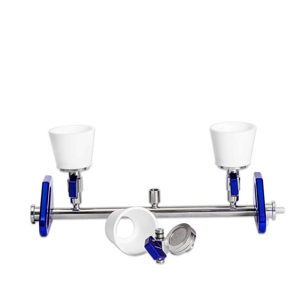 - Válvula: Tipo embolo cilíndrico; En inoxidable/teflón; Independiente para cada prueba; Sellado con oring en viton; Desmontable para higienización; Autoclavable; Mango anodizado
