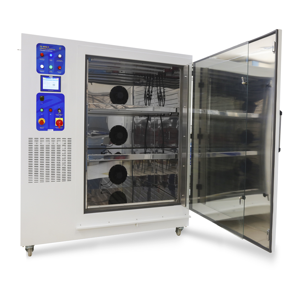 - Cámara interna: En acero inoxidable 304 con pintura electrostática en color Blanco para potenciar la homogeneidad luminosa
