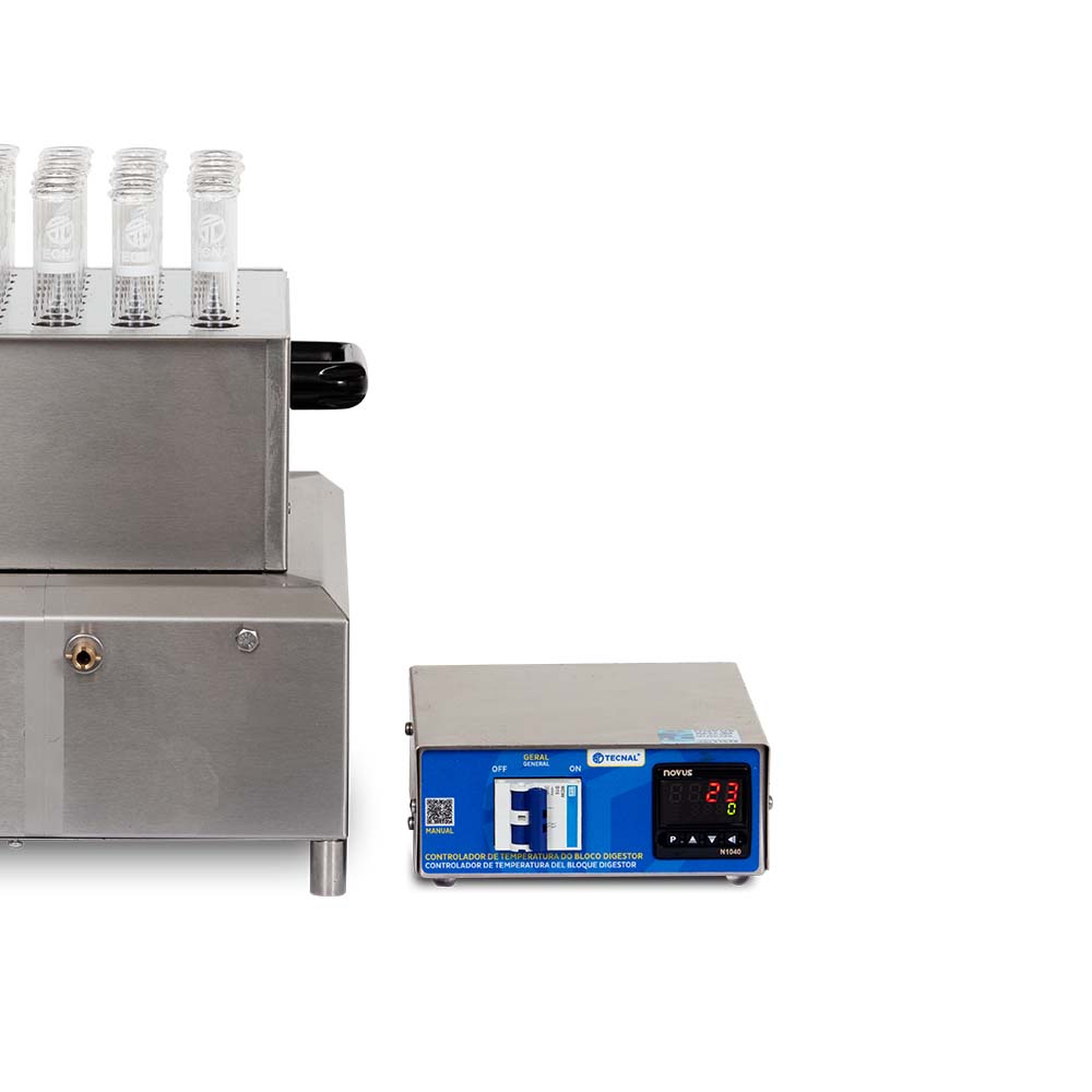 - También incluye: 01 Galería en acero inoxidable; 01 Controlador de temperatura digital microprocesado; 40 Tubo micro en vidrio borosilicato de 100 ml Ø25 x 250 mm