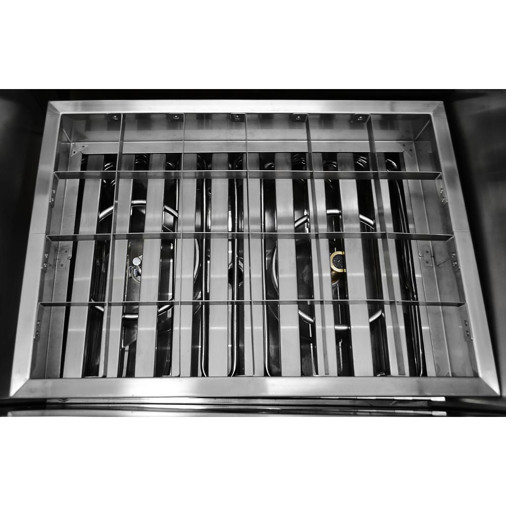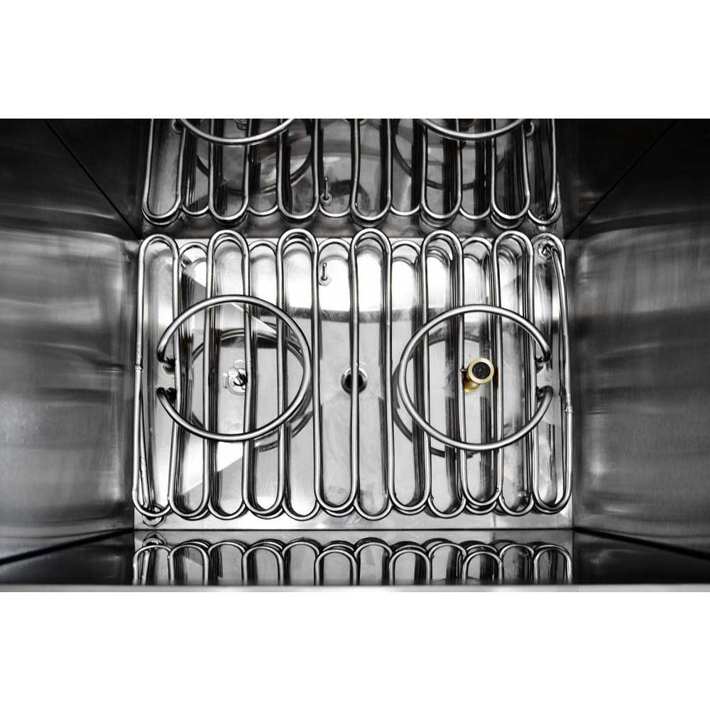 • Gabinete y cuba: Totalmente en acero inoxidable 304 cepillado, con rotaciones