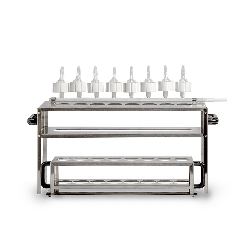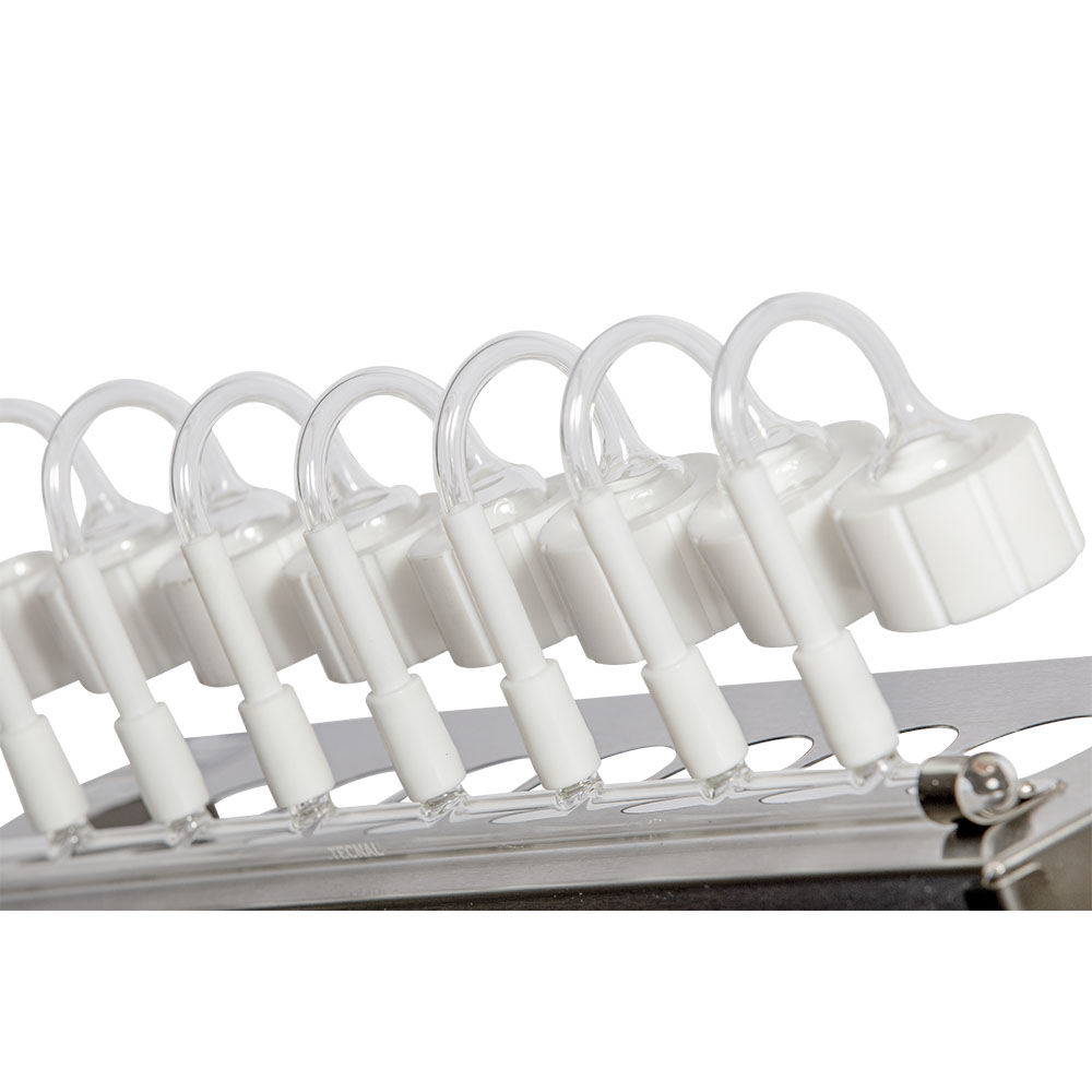 - Capacidad: 8 tubos macro con rosca Ø 50 x 250 mm dividido en 1 manifold de vidrio borosilicato