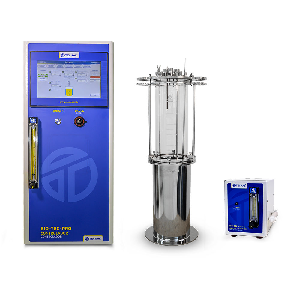 - Sensores y Actuadores: Sensores temperatura, redox pH, dO2 (polarográfico o óptico); dCO2, O2 gaseoso y CO2 gaseoso; BIO-TEC-MG, Mezclador de gases para O2, CO2, N2 y Aire; BIO-TEC-CM, Medidor/Controlador másico automático de salida; BIO-TEC-ROTAMETRO, Medidor/Controlador manual de salida; BIO-TEC-LED, Fotoperiodo de Leds; BIO-TEC-BP, Bomba peristáltica con control ON/OFF para dosificación de ácido, base y antiespumante; BIO-TEC-BP-ROT, Bomba peristáltica con control de salida variable para la dosificación de nutrientes; NOBREAK senoidal 2.4 KVA; DA-1000-REATOR, Compresor de aire, exento de aceite con silenciador de ruido.
