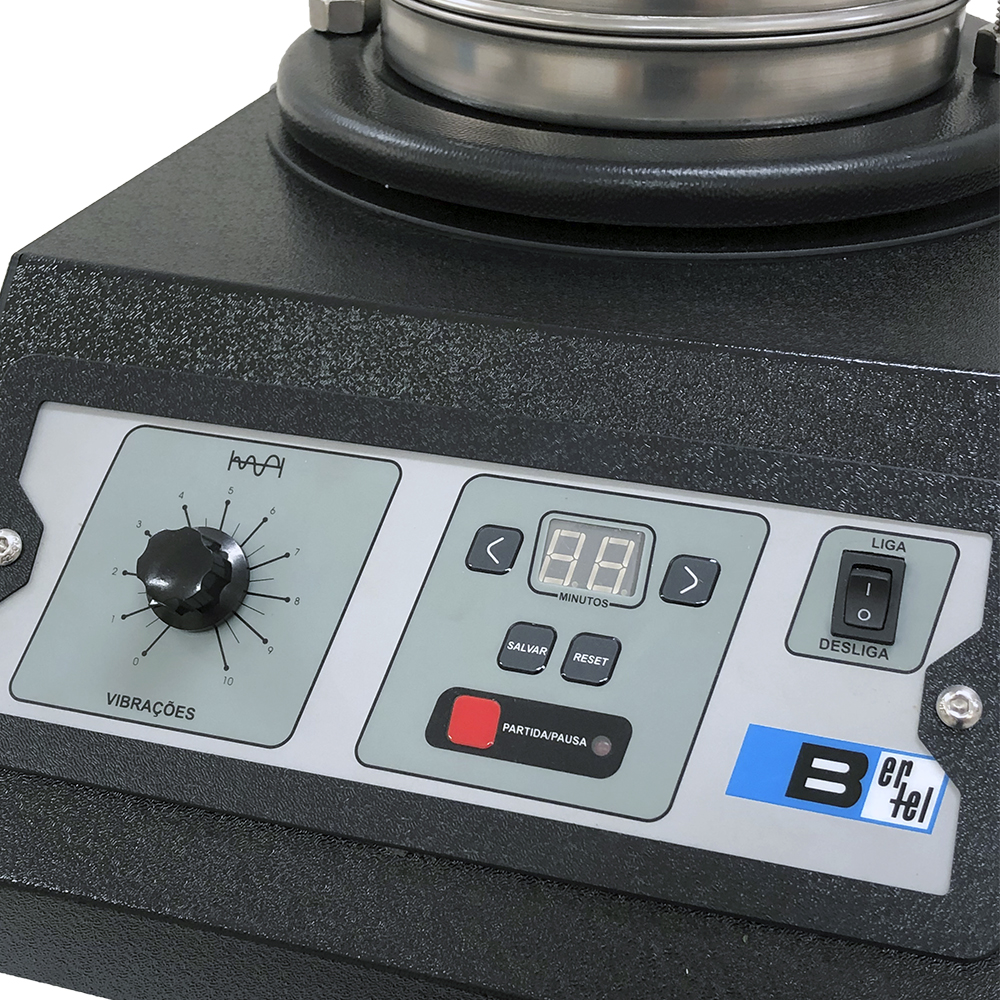 - Capacidade: até 6 peneiras de 2' de altura ou até 12 peneiras de 1' de altura