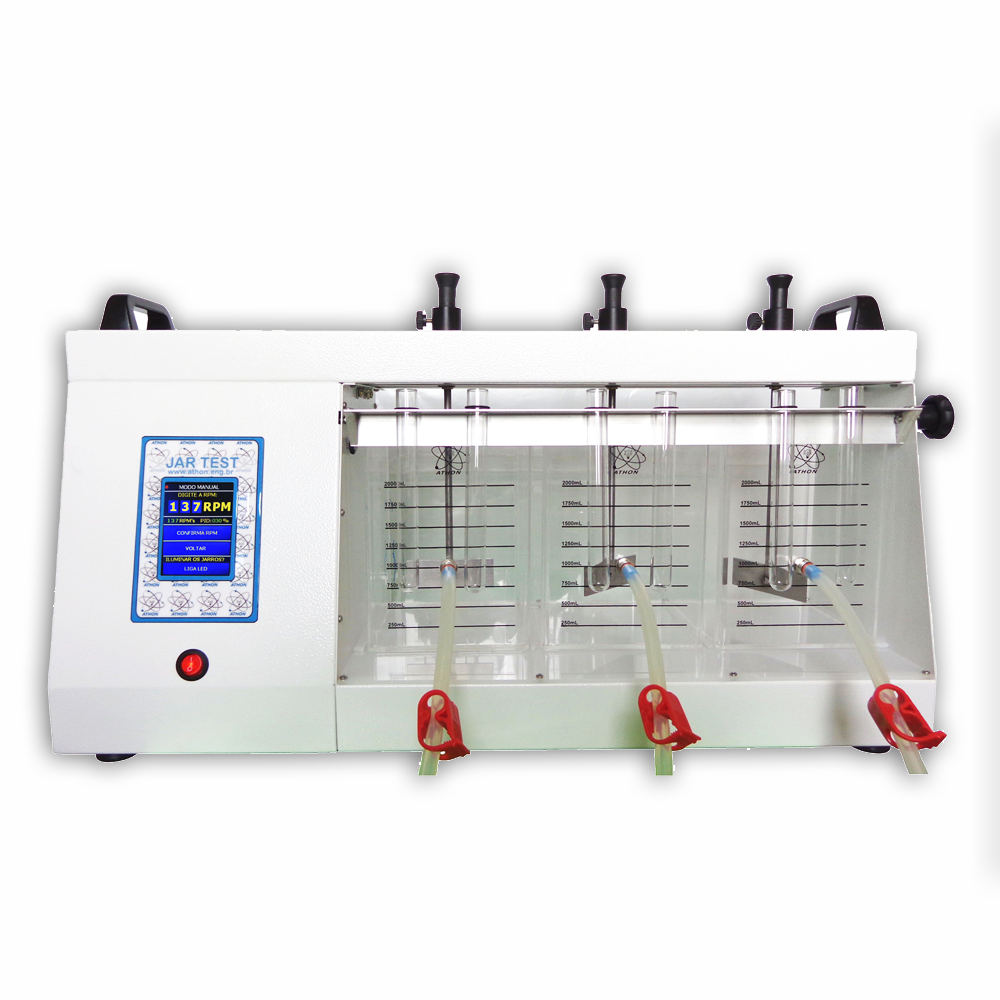 Utilizado nas Estações de Tratamento de Água, para a determinação das dosagens ótimas dos coagulantes a serem empregados (Teste de Floculação em efluentes). Por este teste, determina-se a condição ótima para floculação da amostra caracterizada pelo tempo e agitação necessária.