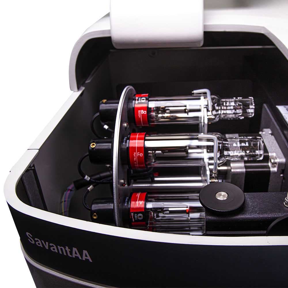 - Torre para 8 lâmpadas totalmente automatizada com otimização da lâmpada, auto alinhamento e posicionamento da lâmpada de catodo oco em dois planos para maximizar a emissão do feixe desde o início de cada análise para garantir precisão